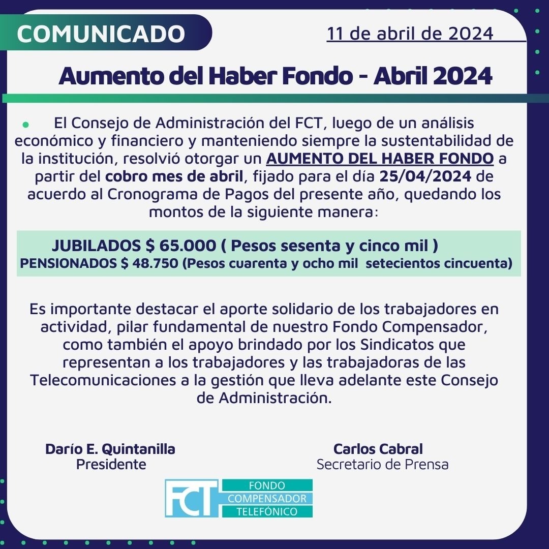 El consejo de Administración del Fondo Compensador Telefónico, con el objetivo de mejorar el beneficio del Haber Fondo, ha resuelto: